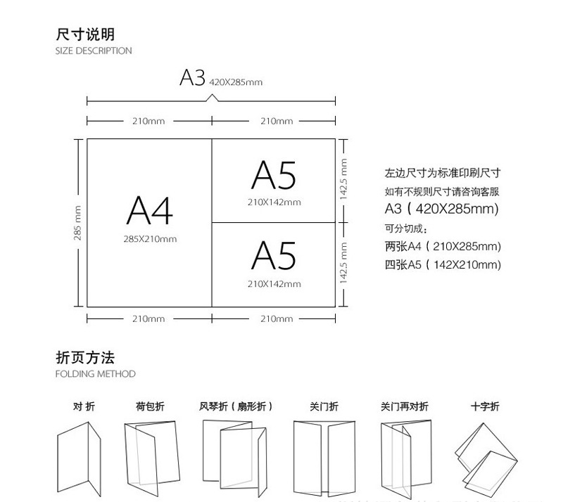 印刷紙張:銅版紙、雙膠紙、啞粉紙、珠光紙、其他藝術(shù)紙(藝術(shù)紙種類較多我們可以免費(fèi)提供紙樣供您選擇)