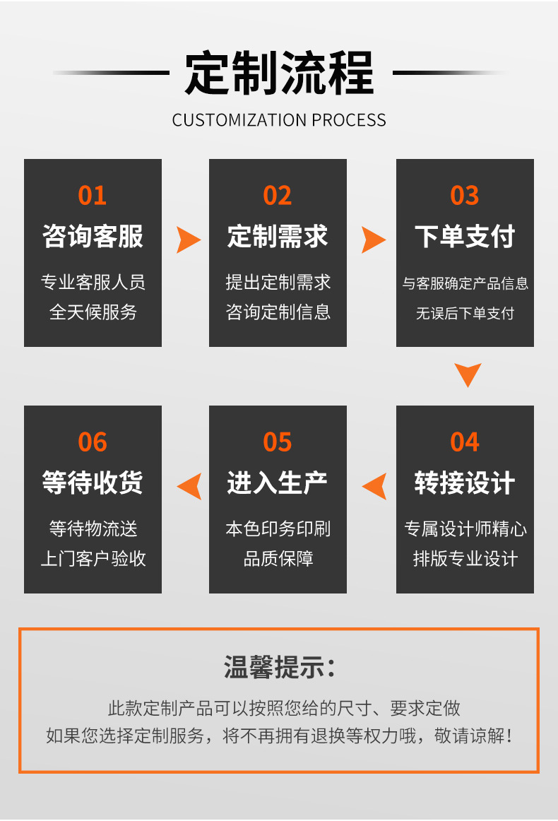 6、完善的售后服務(wù):訂單實(shí)時(shí)追蹤跟進(jìn),直至貨物送達(dá)您的手中對(duì)我們的質(zhì)量和服務(wù)滿意為止!
